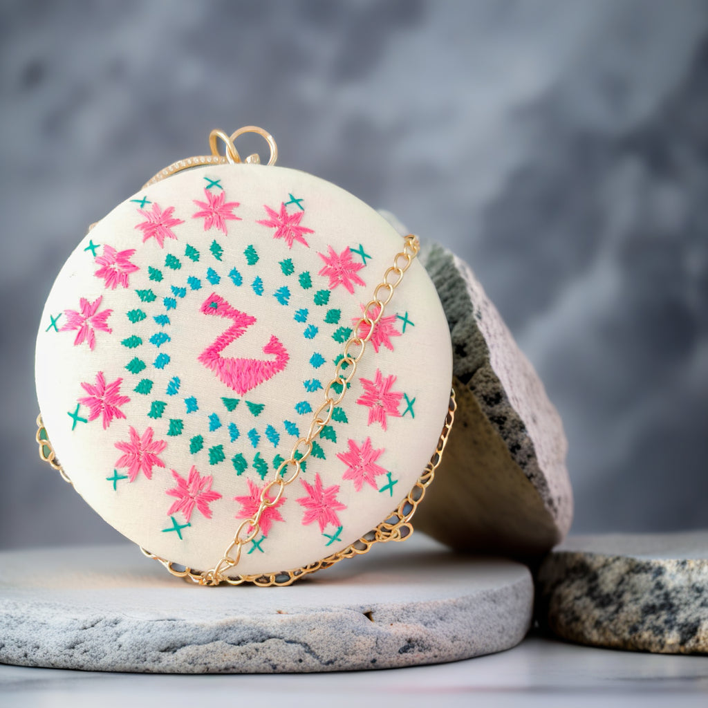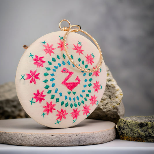 Exclusive OffersHand Work Phulkari Clutch - Off White - Round