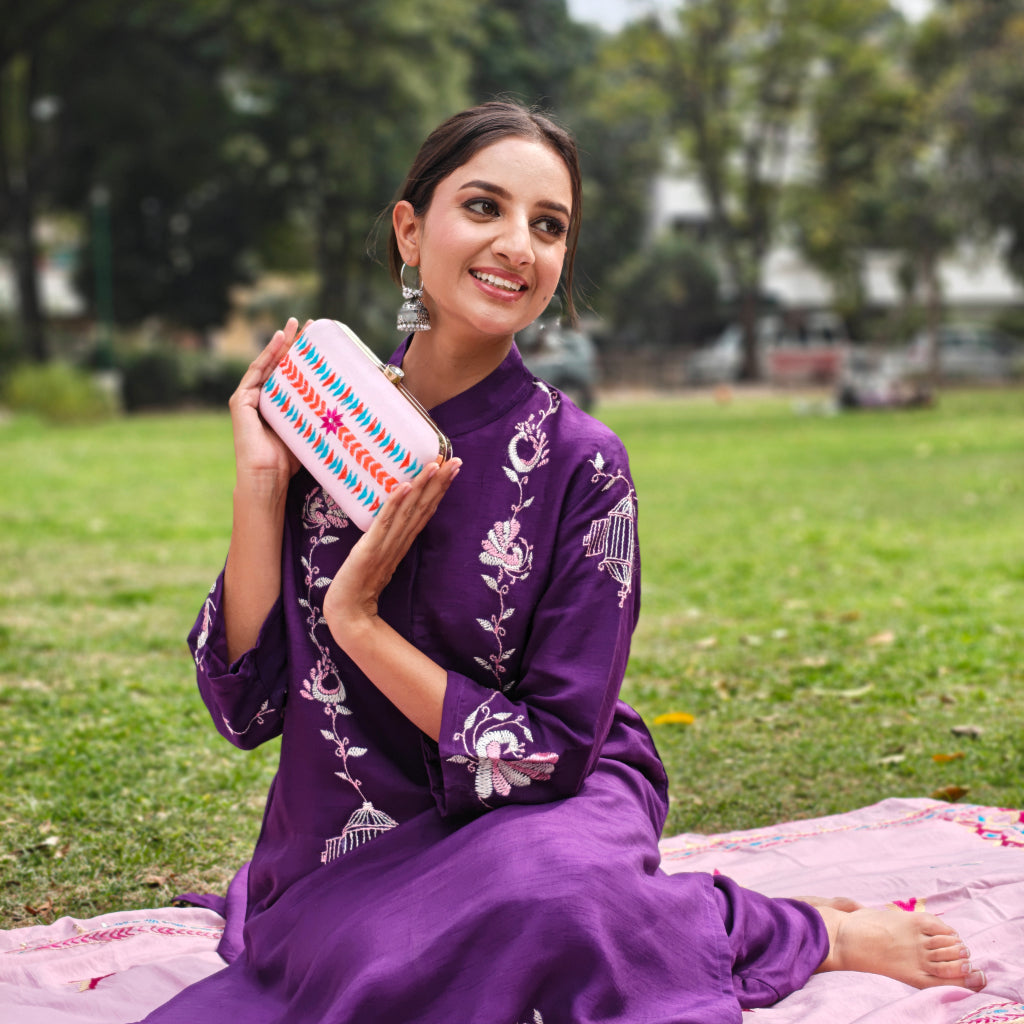 Exclusive OffersHand Work Phulkari Clutch - Majenta Elegance