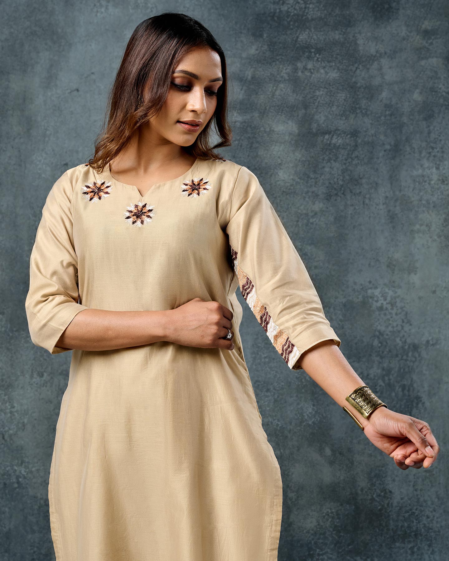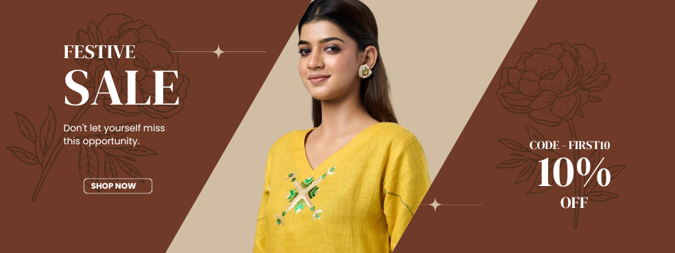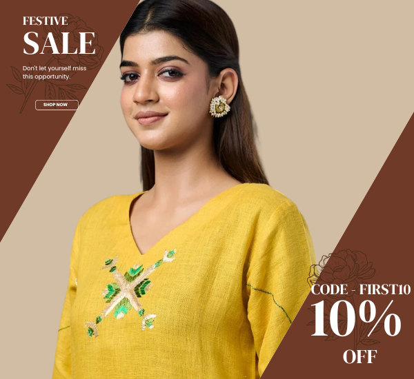 Exclusive OffersPure Cotton Silk Hand Work Phulkari Kurti - Hazelnut