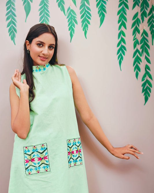 Exclusive OffersPure Cotton Silk Hand Work Phulkari Kurti - Cool Green