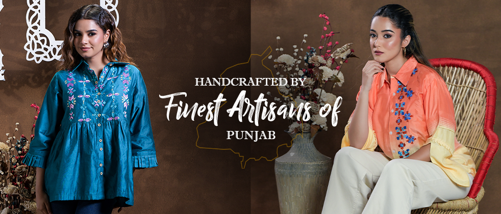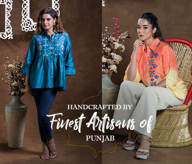 Exclusive OffersPure Georgette Hand Work Phulkari Kurti - Divine Falsa