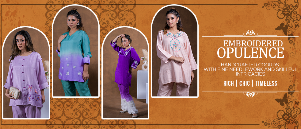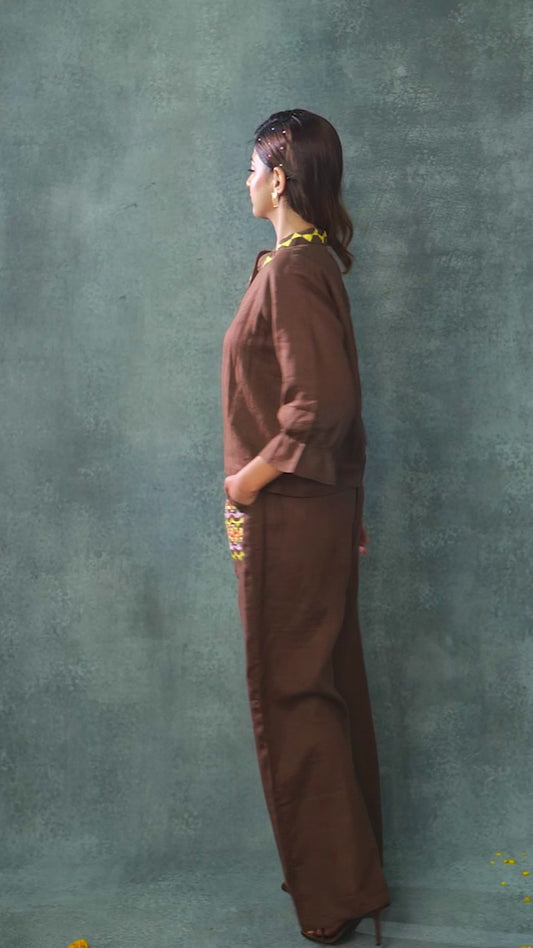 Pure Linen Hand Work Phulkari Coord Set - Coffee Brown
