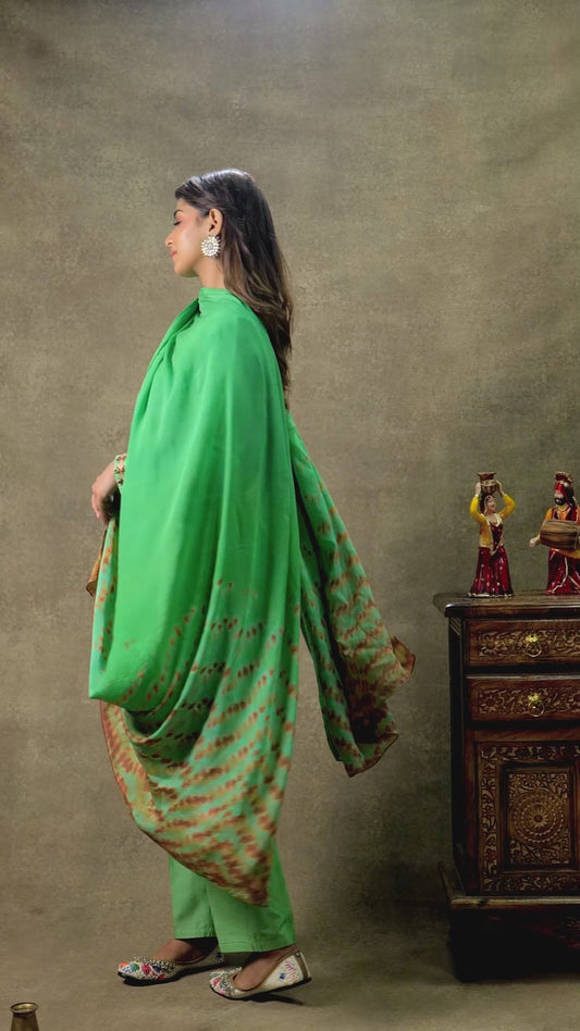 Pure Cotton Silk Hand Work Phulkari Suit with Dupatta - Parakeet Green
