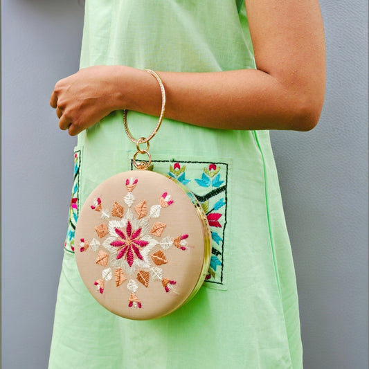 Exclusive OffersHand Work Phulkari Clutch - Fawn Luxe- Round