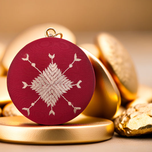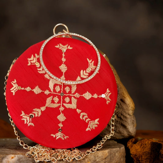Exclusive OffersHand Work Phulkari Clutch - Scarlet Red - Round
