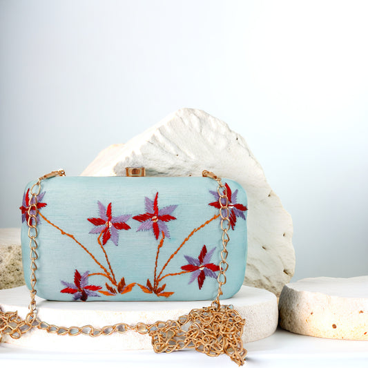 Exclusive OffersHand Work Phulkari Clutch - Sky Blue - Rectangle