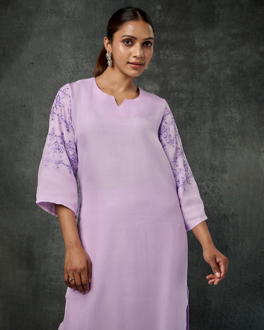Exclusive OffersPure Organza Hand Work Phulkari Kurti - Light Lavender