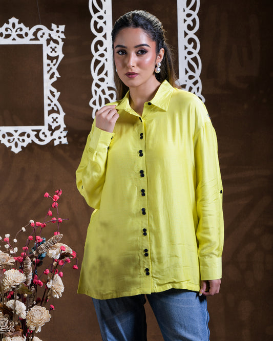 Exclusive OffersPure Muslin Hand Work Phulkari Shirt - Spring Bud - Yellow
