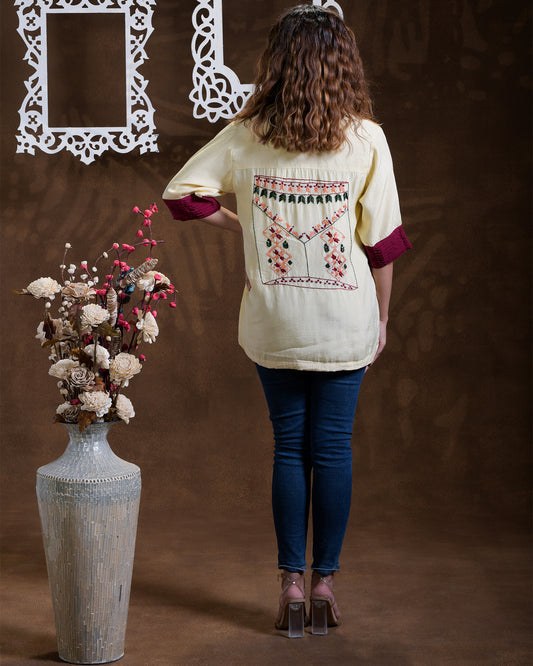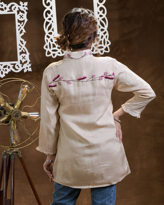 Exclusive OffersPure Cotton Silk Hand Work Phulkari Shirt - Ivory Beige