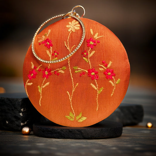 Exclusive OffersHand Work Phulkari Clutch - Rust brown - Round