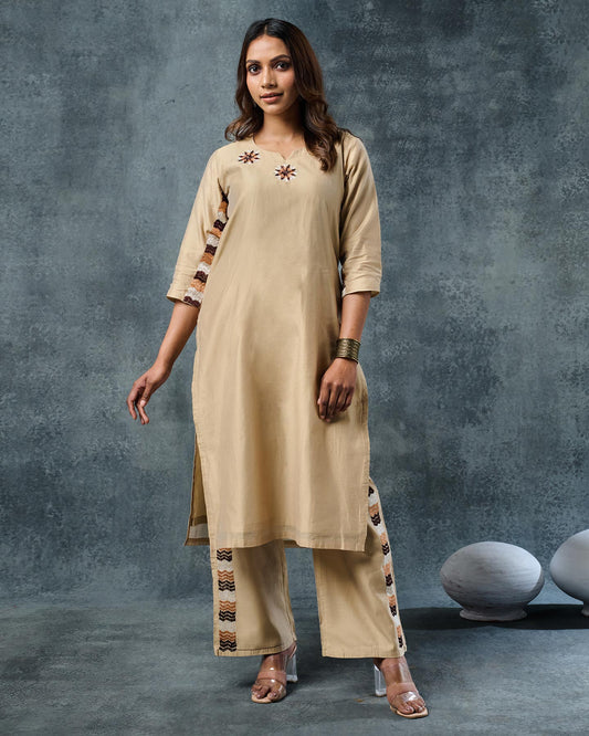 Pure Cotton Silk Hand Work Phulkari Pant - Hazelnut