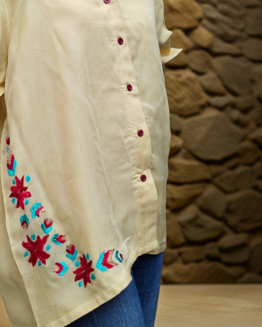 Exclusive OffersPure Cotton Silk Hand Work Phulkari Shirt - Ivory Beige
