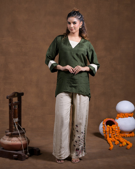 Exclusive OffersPure Cotton Silk Hand Work Phulkari Tunic - Luxurious Green